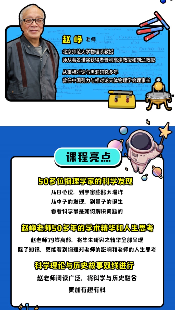 从量子到宇宙:北师大赵峥教授的物理课用科学理论与历史故事双线进行,从日心说,讲到宇宙膨胀大爆炸;从中子的发现,讲到量子的诞生;我们将一起走进科学发现的现场,用物理学视角看世界。
